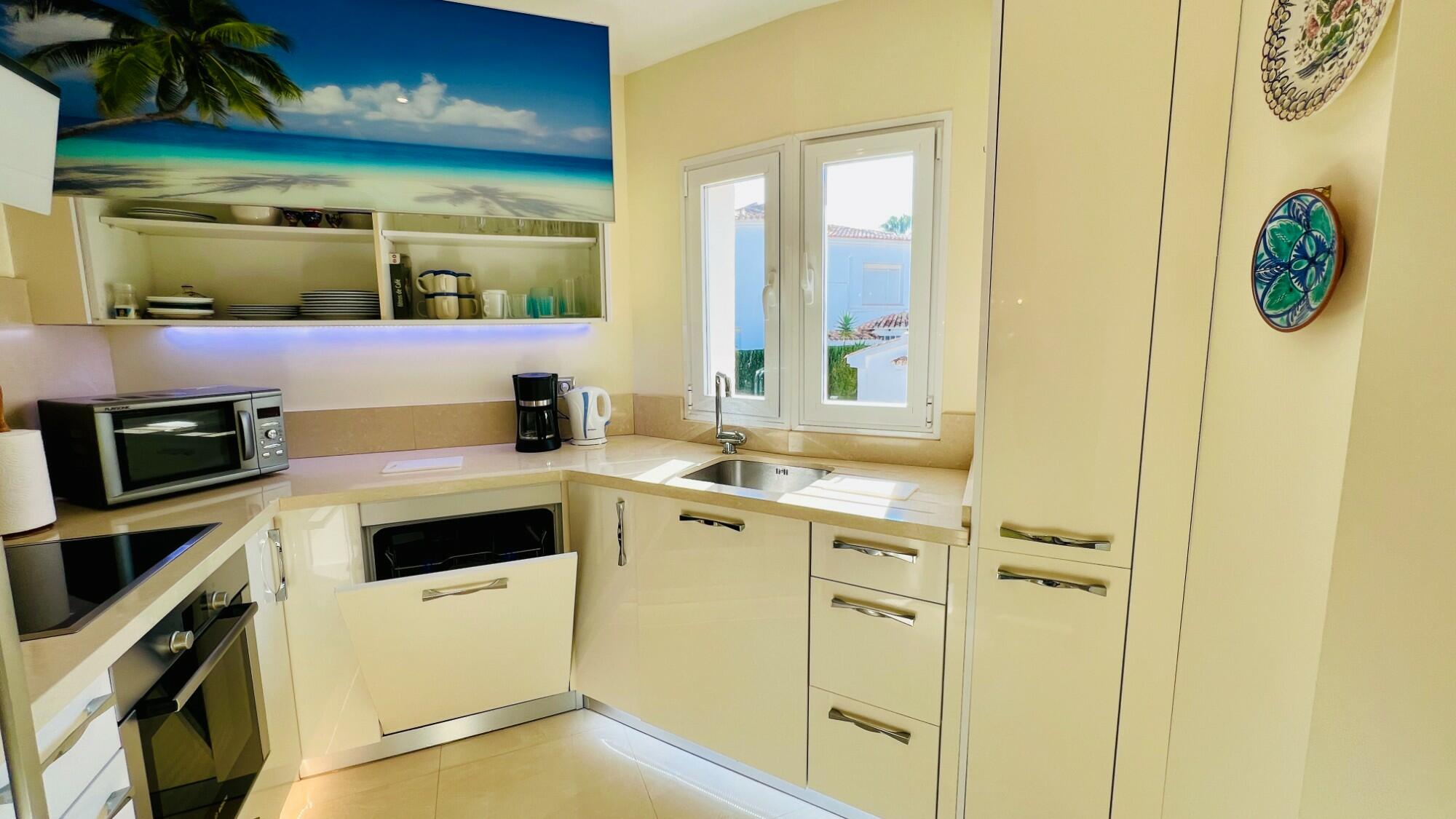 Outside is the freeform community swimming pool, convenient poolside showers and spacious terrace and garden areas for relaxing and sunbathing. Within a short walk outside the urbanisation is a wonderful coastal pathway showcasing stunning sea and cliff views, it’s a great spot to walk the dog and you can walk all the way into Moraira in about 40 minutes. A shorter walk away is the Pepe la Sal supermarket, and a range of lovely restaurants and bars. If you do want to drive into Moraira it will take you under 8 minutes.