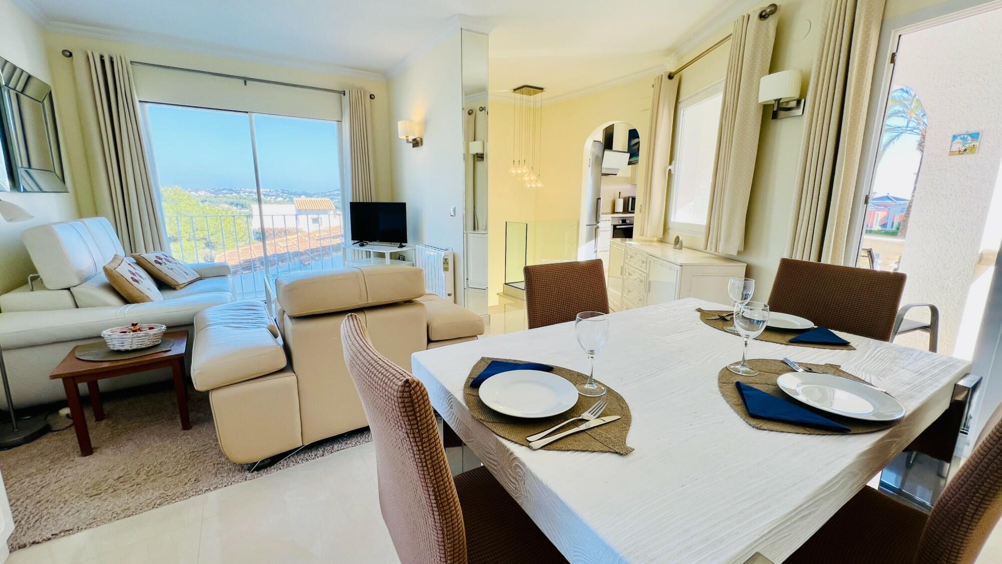 Located in a highly sought-after private gated urbanisation, this beautifully maintained two-bedroom, two-bathroom duplex apartmentoffers modernised living across two levels. Enjoy breath taking views stretching across the valley towards Montgó, all from the comfort of this charming home. Just a short stroll from a private beach, as well as local shops, bars, and restaurants, this property boasts an unbeatable location. The centre of Moraira is only a short drive away, making it an ideal holiday retreat or investment opportunity. Properties in this development very rarely come on the market for Sale, so do not miss out on this unique opportunity—contact us today to arrange a viewing!