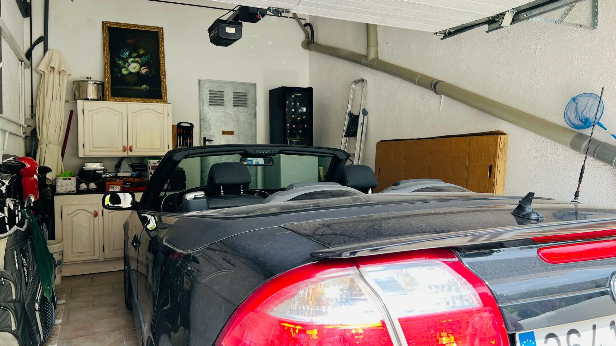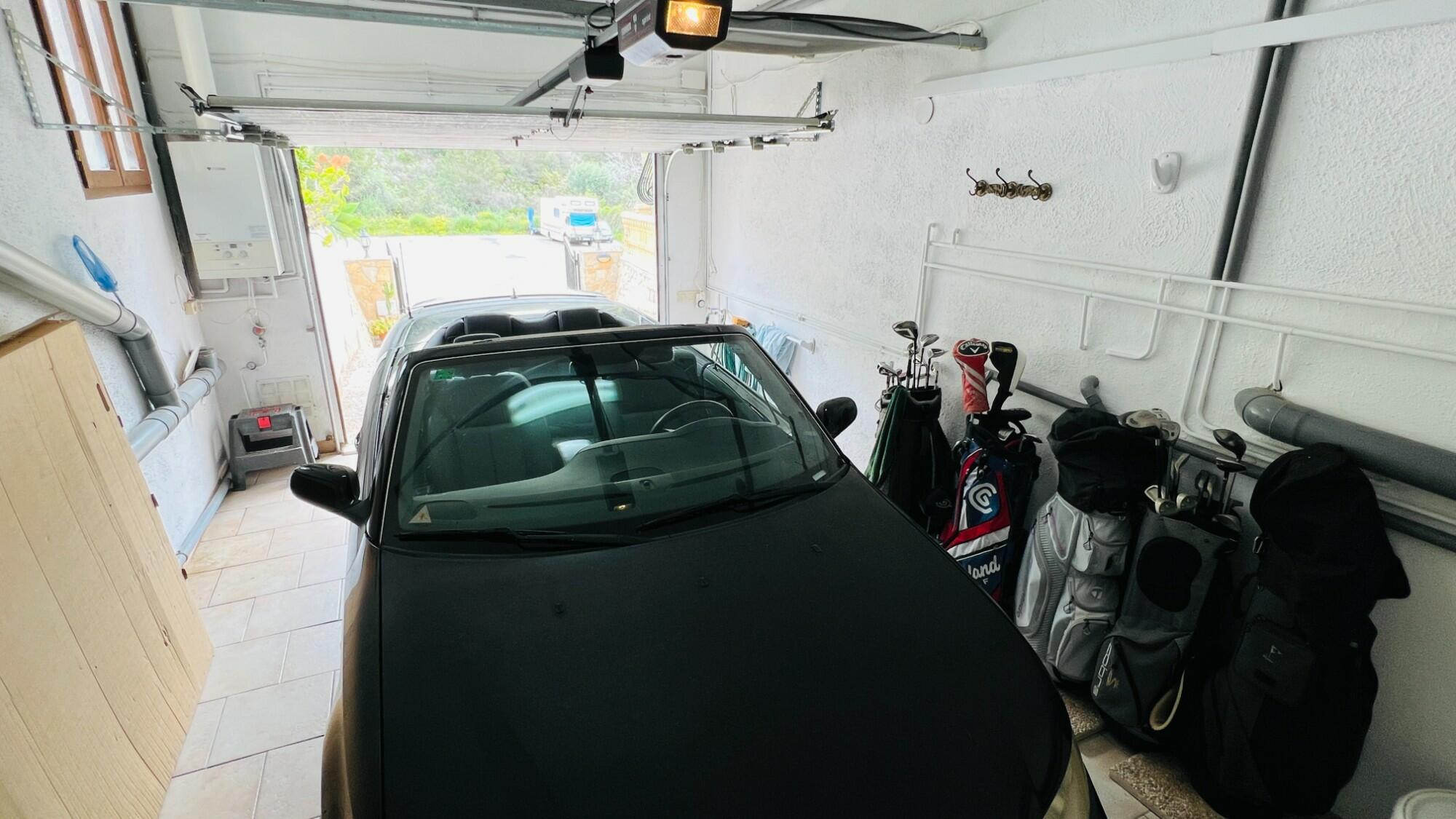 Accessed from street level through an electronic gate, the property offers parking on the driveway or in a secure, remote-controlled garage. For visiting guests, convenient public parking is available directly opposite the villa. Steps on either side lead up to the house. To the left, generous terraces are framed by mature cactus, fruit trees, and Mediterranean shrubs, creating an immediate sense of tranquillity and privacy.