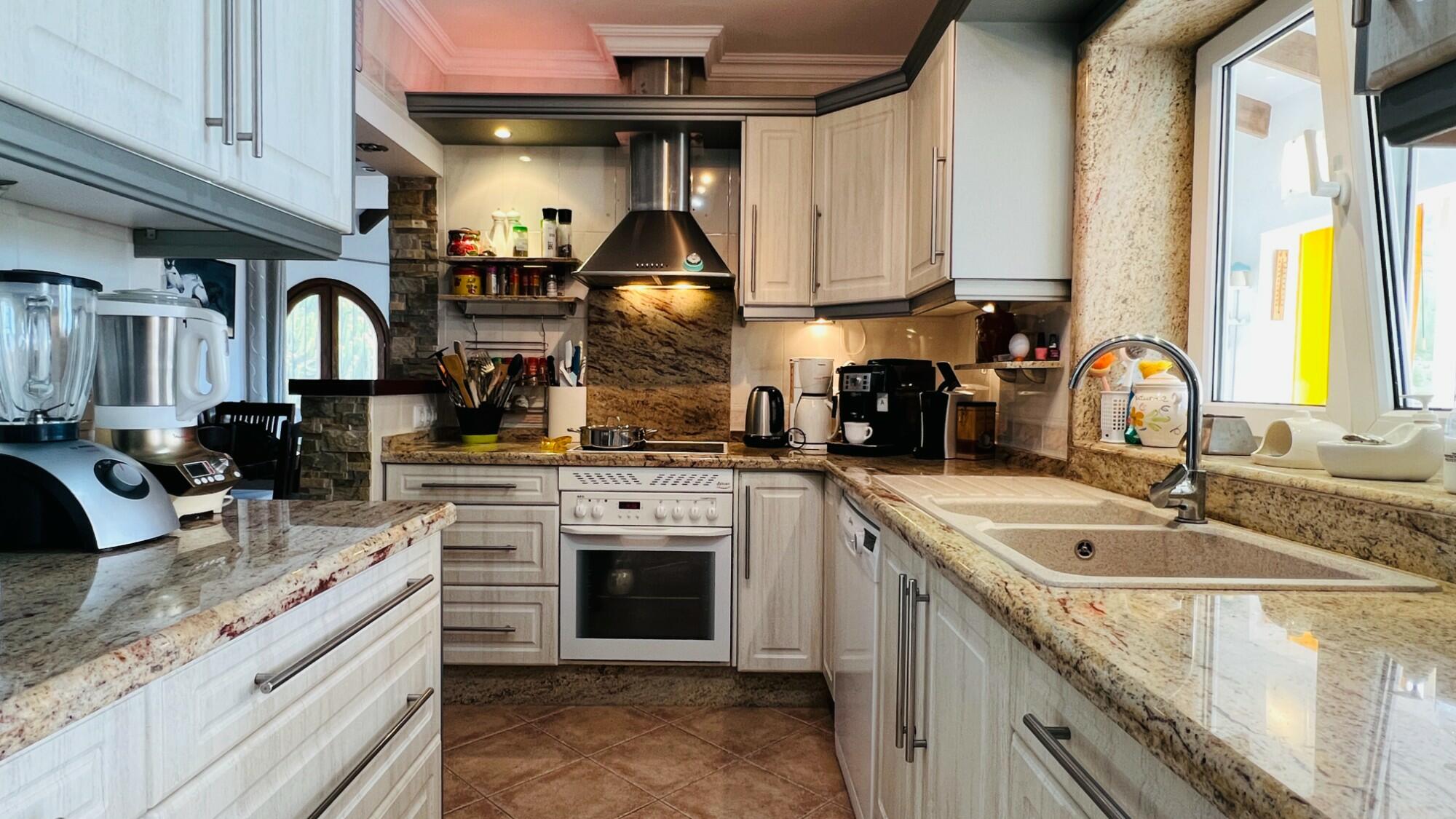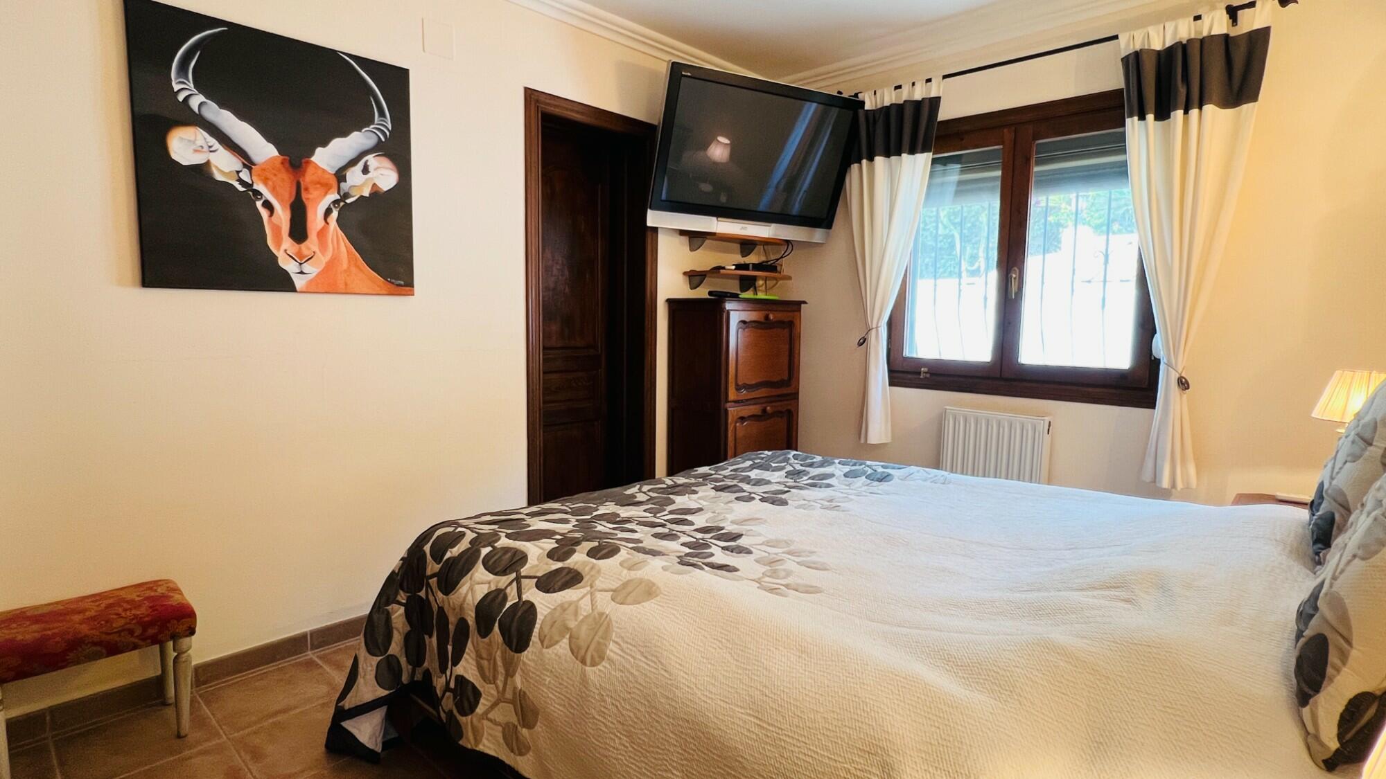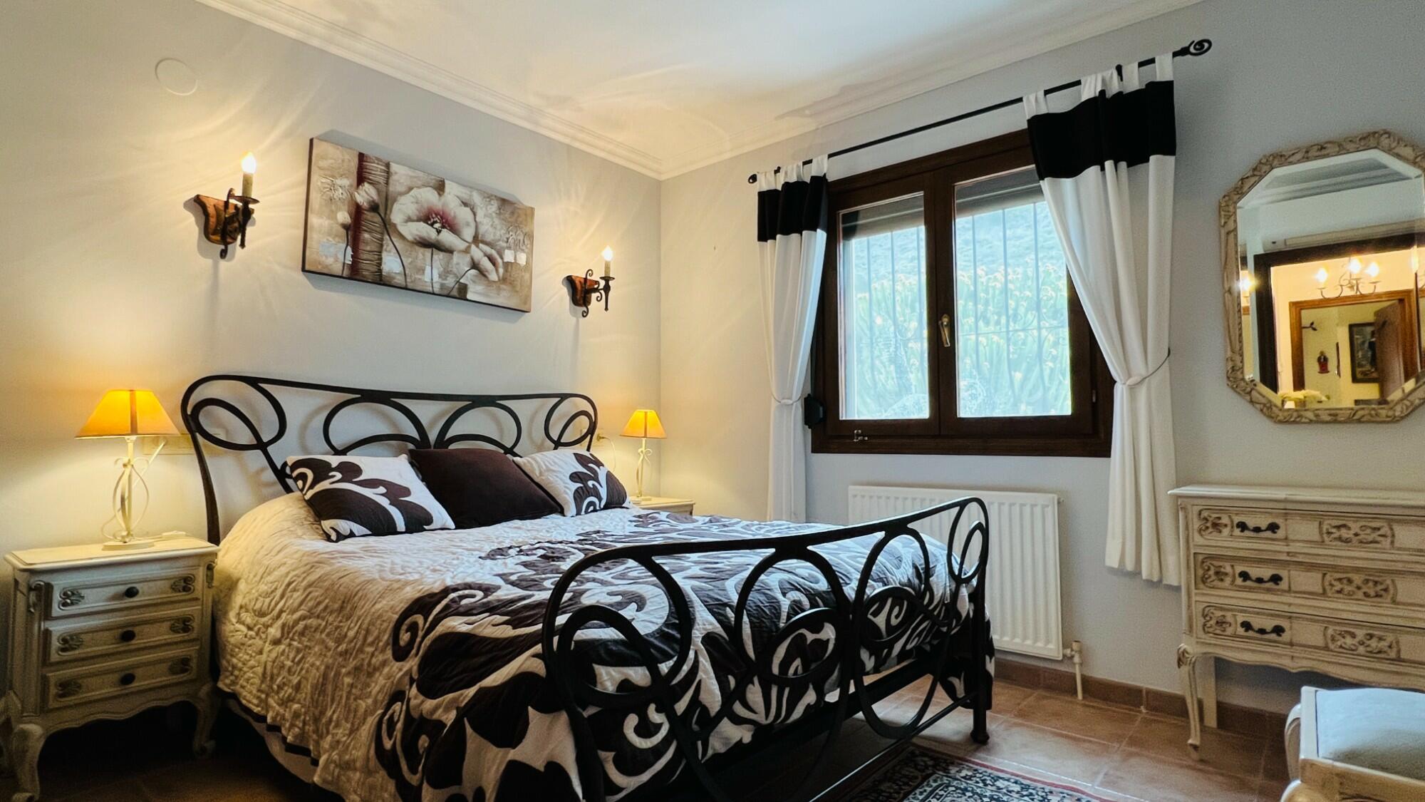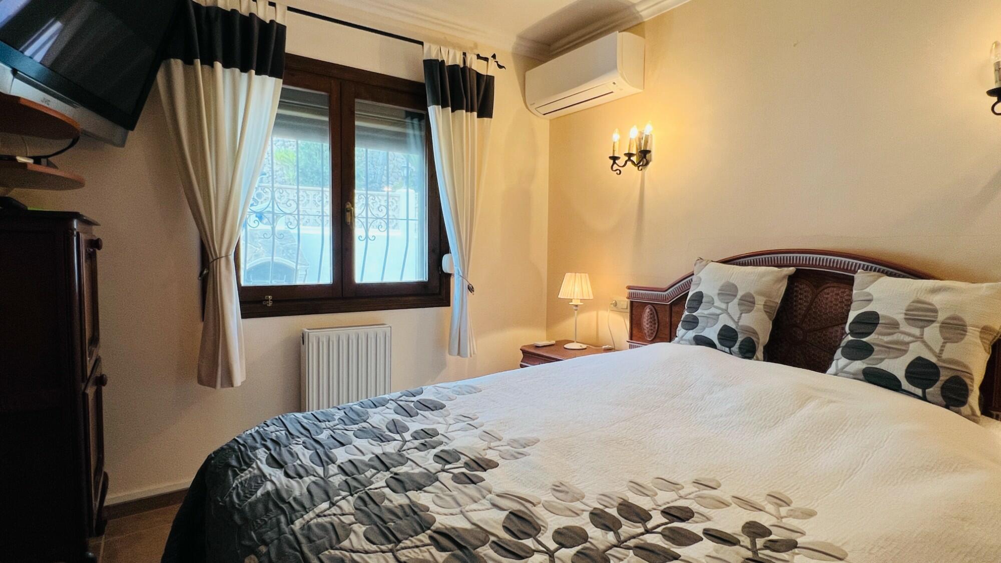This lovely Spanish villa for sale in Valle del Portet, Benitachellon the outskirts of Moraira,is perfect for those looking for a comfortable family home or holiday retreat. The main house features three bedrooms, while a fourth guest bedroom with its own private entrance is located on the lower level – ideal for visitors or extended family. The private pool is surrounded by generous terraces and attractive, low-maintenance garden areas, offering all day sunshine and shaded corners for relaxing or entertaining. There are safe spaces for younger children to play, making this a lovely choice for families. Just a 2-minute drive away, you will find a large supermarket and local shops, while the centre of Moraira and its beautiful beaches are less than 8 minutes away by car. Well cared for by the current owners as a year-round holiday getaway, the villa is equally suited as a permanent home.