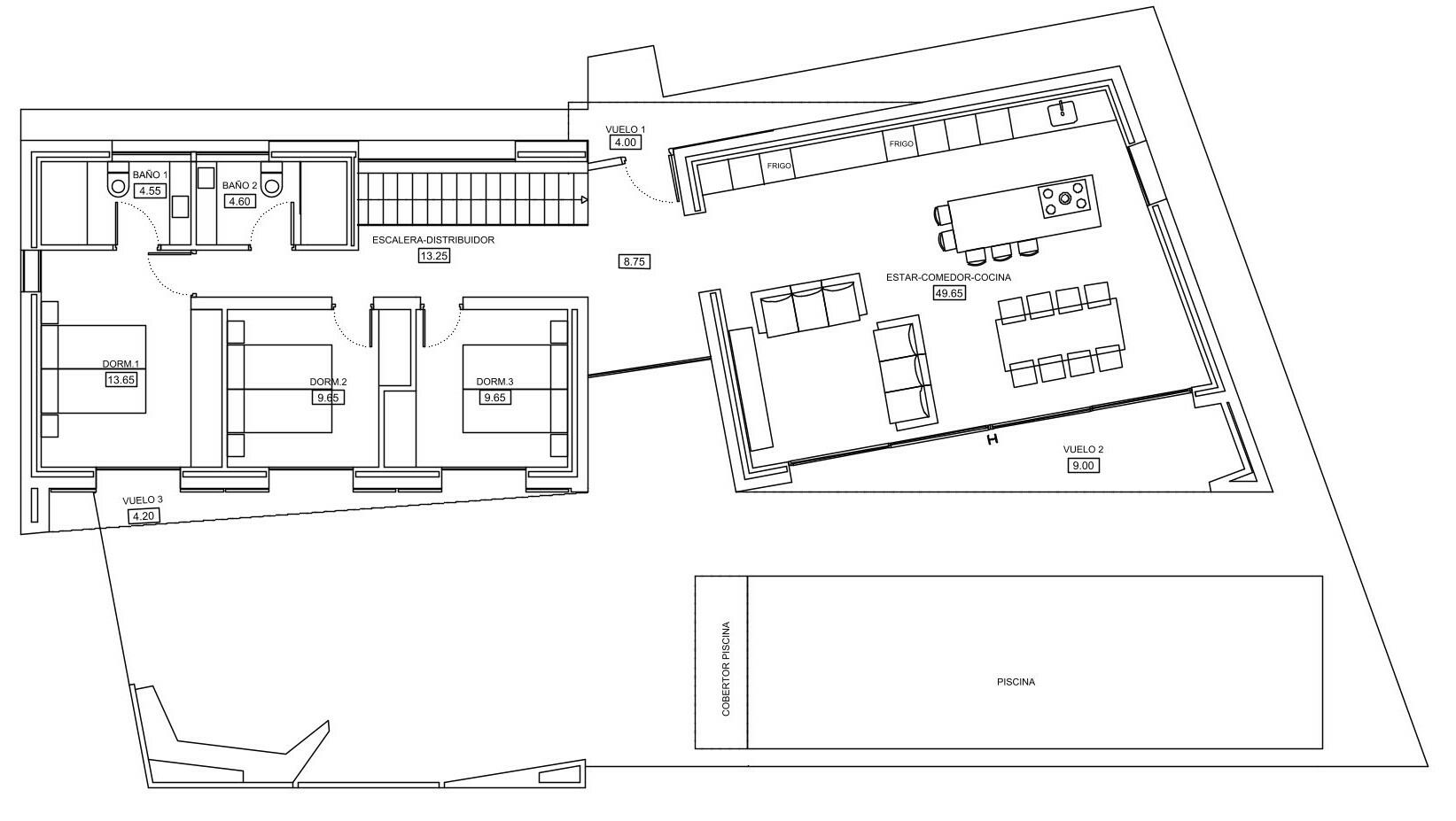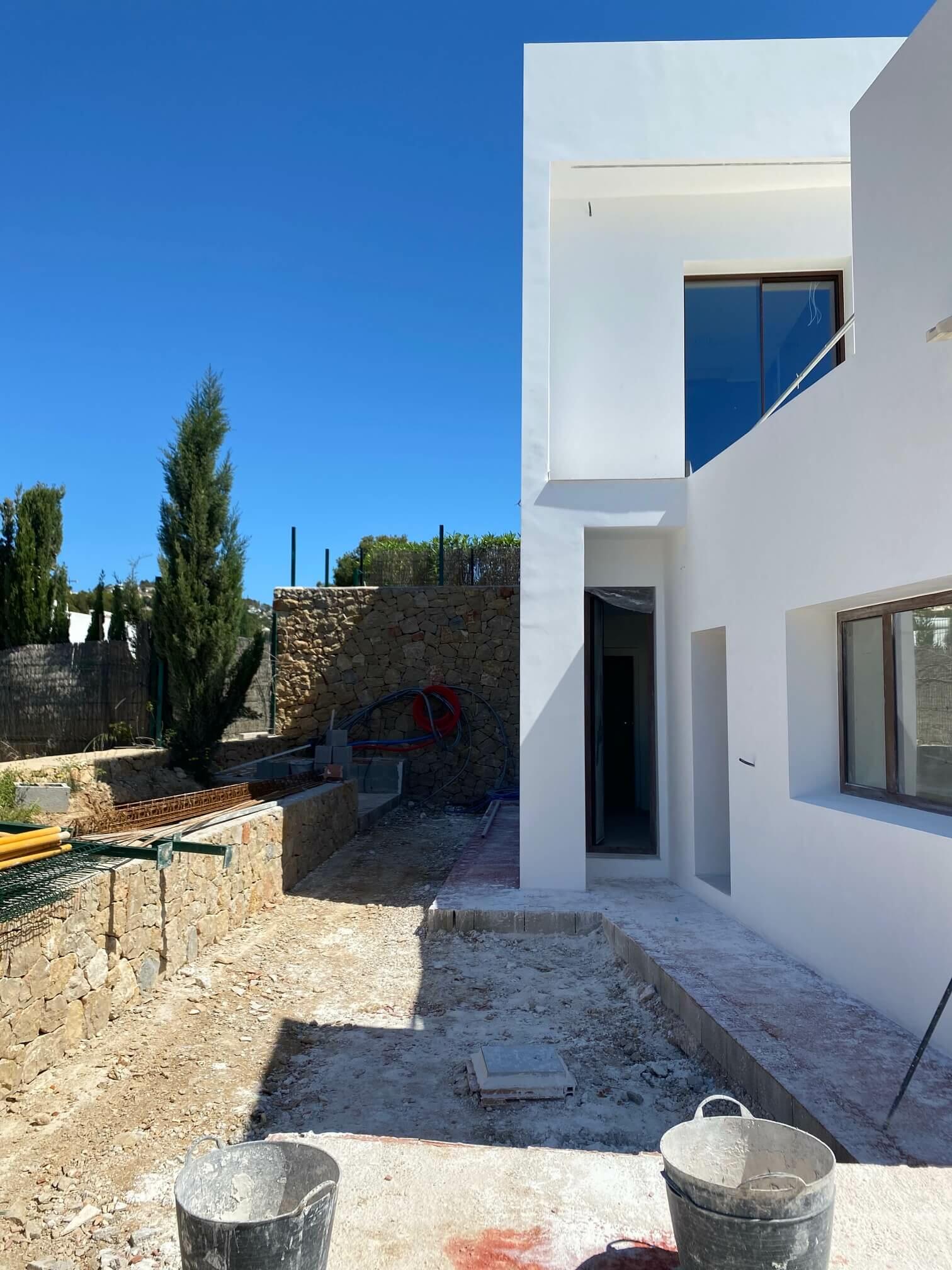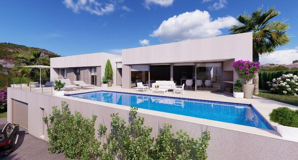 Modern villa on the coast of Benissa and Calpe, 1.5 km from La Fustera beach (Costa Blanca, Alicante). The villa features luxury qualities and is located in one of the best areas of the Costa Blanca, 1.5 km from La Fustera beach, on the coast of Benissa, between the towns of Moraira and Calpe.The villa has two floors:- Ground floor: this floor has the garage with capacity for 2 cars and from where there is a door providing direct access to the interior of this floor where there is 1 bedroom with en-suite bathroom and dressing room, laundry room, courtesy toilet, and spa area and/or other leisure and relaxation activities. Access to the upper floor is via an internal staircase.- Upper floor: this floor is distributed into an entrance hall, modern fully equipped open-plan kitchen to the spacious living-dining room from where you access the terrace and pool area. On the other side of this floor is the resting area where 3 bedrooms are located, with 1 of them having an en-suite bathroom and another bathroom shared by the other two bedrooms. All three bedrooms have direct access to the pool terrace.Among the main features, qualities, and finishes of the property, we highlight the following:- Modern high-end kitchen consisting of a floor-to-ceiling column area with cabinets, drawers, lofts, 2 niches with LED lighting, and a separate island. It will be equipped with appliances (oven, microwave, plate warmer, two combined refrigerators with fridge and freezer, dishwasher, and extractor fan embedded in the ceiling above the 90 cm cooktop placed on the island).- Laundry room with furniture and equipped with sink, washing machine and dryer, water softener installation, 250-liter aeroterm, and inertia tank.- Hot and cold air conditioning via ducts with independent thermostats in each room.- Underfloor heating with a heat pump throughout the property with independent thermostats in each room.- Pre-installation of alarm inside and outside the property.- Exterior carpentry of aluminum with thermal bridge breakage and great thermal and acoustic insulation.- Exterior shutters or motorized blinds in bedrooms according to project.- Glazing with low-emissivity glass offering excellent thermal insulation, high light transmission, and effective protection against solar radiation.- Interior carpentry with lined wardrobes, with a height from floor to ceiling. Passage doors made of Etimoe veneered wood on the upper floor’s door and white lacquered on the ground floor with hidden hinges and magnetic closure.- Bathrooms, complete installation of sanitary ware, faucets, and bathroom furniture made of high-end materials. Thermostatic showers with overhead rain effect and niches with RGB LED lighting with color change options.- Halogens and lamps will be installed inside and outside the property.- Installation for TV and internet in the main rooms of the property.- Photovoltaic installation.- Heated pool with automatic cover, lighting with 3 RGB LED projector lights, and heat pump.- Landscaping of the plot with low maintenance garden.- Hot water system via aerotermia with a capacity of 250 liters in the laundry combined with solar plates with a 150-liter tank on the roof.- Installation of two doors, one pedestrian with intercom and another for vehicles with a motor.- Paved access to garage and parking area using aged texture non-slip paving stones.- Spa area and/or other leisure and relaxation activities with windows to the inside of the pool, interior RGB lighting, and halogens, with pre-installation for jacuzzi, bar/bar with sink, TV/cinema with space for billiard table, conditioned and mechanical ventilation with heat recovery.The villa is located in one of the most beautiful residential areas of the Costa Blanca. The towns of Calpe, Benissa, and Moraira offer an extraordinarily attractive and ecologically interesting coast, with a rugged coastline featuring numerous beaches and hidden coves.Just 1.5 km from this extraordinary property is the main beach of the town, La Fustera Beach, a sandy beach located between the Les Basetes Nautical Club and Cala Pinets, which has the "Blue Flag" distinction certifying the quality of its waters and the multiple services available: seafront promenade, walkways and access for the disabled, children’s play area and sports, red cross, bus stop, parking, maritime surveillance, cafes and restaurants, etc.From La Fustera Beach, you can access the Benissa Ecological Walk, from where you can start a pleasant journey of just under 2 km, alongside part of the coastline of Benissa, and enjoy views of the sea and some coves and cliffs of great beauty.The privileged location of this property is enhanced by its short distance to the towns of Calpe, just 2.5 km from La Fossa Beach, and Moraira only 9 km away.For golf and water sports enthusiasts, it is possible to enjoy these activities at the Ifach Golf Club, just 6.5 km from the property, and at the Les Basetes Nautical Club, only 2.3 km away.Expected completion date June 2025.Documents