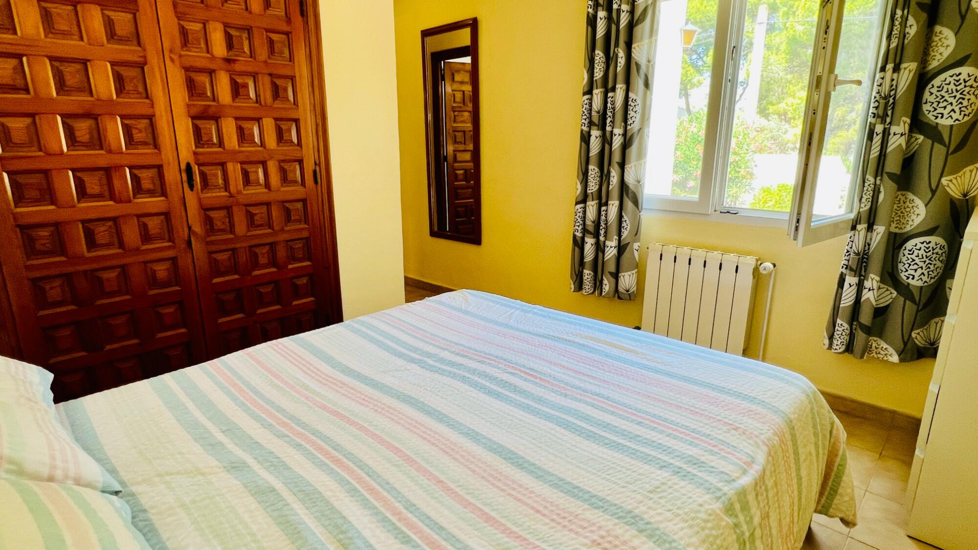 Looking for a holiday home close to Moraira? This 2-bedroom villa in Pinar del Advocat could be just the one. Set on a flat plot with a private pool, updated kitchen and bathrooms, it is close to the beach and town. With aprivate pool, solarium terrace, and generous gardens with plenty of space to relax or entertain. There is also the option to create a third bedroom, ideal for visiting family or guests and whilst the inside is move in ready, there is plenty of potential to update and improve the exterior and gardens. Only a 4-minute drive to the beach and the centre of Moraira, this property is ideal as holiday or permanent home, or rental investment on the Costa Blanca.